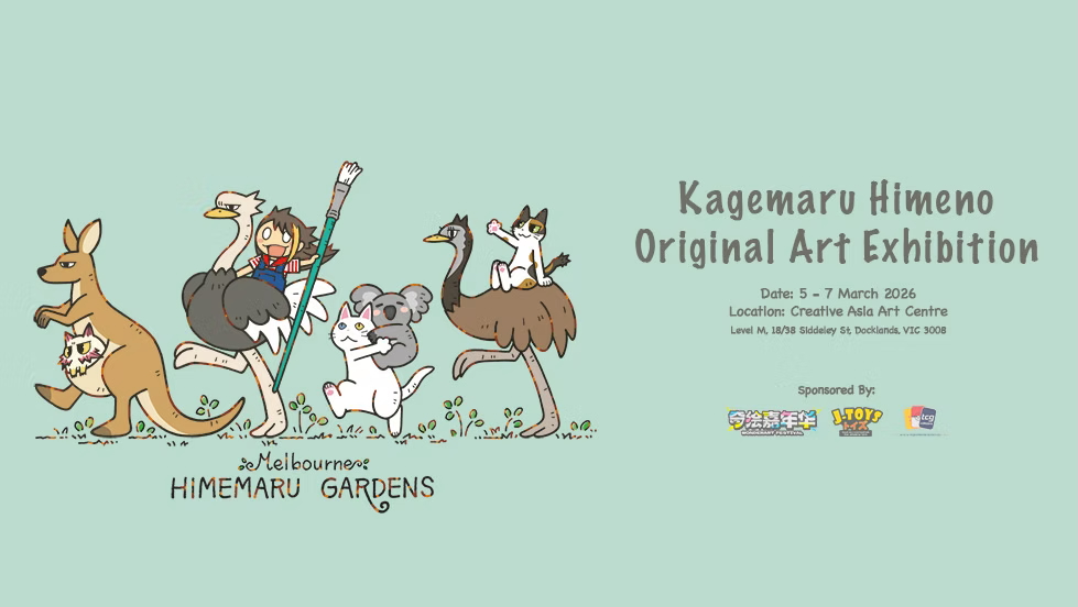 We are pleased to announce that an original art exhibition by our resident illustrator and manga artist, Kagemaru Himeno, titled “Melbourne Himemaru Gardens,” will be held at the Creative Asia Art Centre in Melbourne, Australia, starting March 5, 2026. This event is proudly hosted by our local partner.